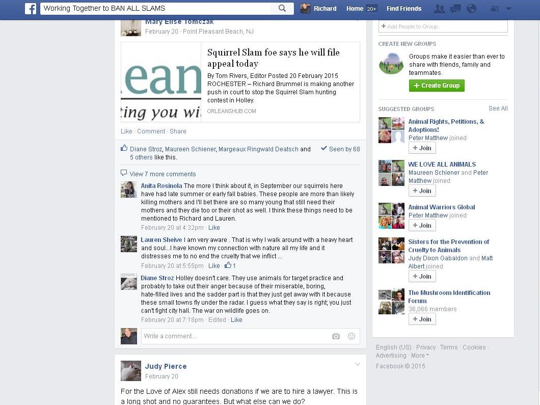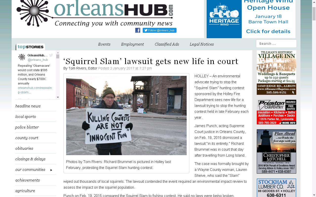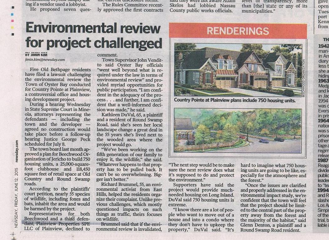 Updates -- June 12, 2015Plainview/Old Bethpage, N.Y., June 12, 2015 - Article 78 Filed Against Oyster Bay Over Devastating "Country Pointe-Plainview" "Mini-City" See Newsday coverage. Manhasset/North Hills, N.Y., April 3, 2015 - Massive Appeal Filed to Fight Air-Stripperin Christopher Morley Park Forest; East Hills, N.Y., April 17, 2015 - Rebuttal Filed (A, B) v. Scandalous Legal-SmearsBy Village's %$@! Attorneys; Court Sides With Us, Again. Rochester, N.Y., Feb., 2015 - 400-Mile Roadtrip (4x) to Challenge Squirrel Hunt'Contest' Near Rochester, N.Y. After Three-Years' Organizing and Prep, Appeal Pending |