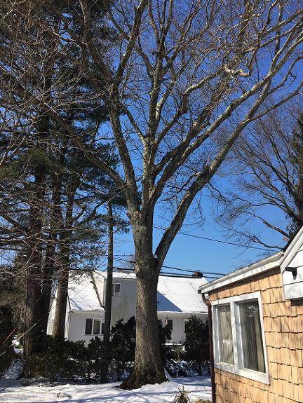 The two statuesque backyard trees at 43 Westwood Circle planned to be destroyed per ARB approval on 3/4/19. These two trees at 43 Westwood circle were recklessly approved for destruction by the East Hills Architectural Review Board on Monday, March 4, 2019, with no expert testimony discussed, no effective notification to neighbors, and no discussion of the environmental consequences of years of tree destruction allowed by the Board and the Tree Warden (see next article). Environmental activist Richard Brummel testified against the proposal -- over numerous interruptions -- challenging the lack of public information published, the absence of expert opinion discussed, the value of trees to the local environment as stated in Village law and challenged the Board's asserton its actions were not having a significant negative impact on the environment pursuant to state law (SEQRA). The Fight Resumes, 2019: The Crisis Of "Deforestation" Of The Suburbs EnduresOakland, N.J., January 23, 2019 -- After a difficult hiatus, we resume a level of engagement in fighting the unabating environmental destruction in our hometown, East Hills, N.Y. Inasmuch as we have continue to visit at least once a week, we even have legal standing if needed.     During a weekly visit to Norgate on January 23rd, the full ugliness and crookedness of East Hills' 'environmental/real-estate' policy was on full display, as almost every healthy, majestic tree at One Wickham Rd. was cut down under the auspices of the ubiquitous East Hills green 'tree permit' -- which is thus profoundly perverted from its original design "to protect the tree canopy for this and future generations" (Village Code Section 186-1).