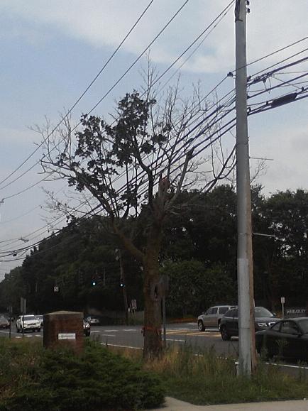 Photos of LIPA Tree Butchery, 2012 Contact your Representatives: Topping trees is sharply disapproved by New York State's own Department of Environmental Conservation (DEC) Here as well as by professional arborist organizations Here. But LIPA and its contract tree companies are on a rampage through Long Island, destroying healthy trees by gutting their branch systems in the dubious effort to prevent power failures. (In fact they are guaranteeing that the trees they vandalize become unhealthy and will eventually fail, as many of the photos here illustrate.) Municipalities like East Hills, where many of these photos were taken, have shamelessly given the tree cutters carte blanche, and have helped them bully residents into also permitting cutting on private property. This letter was submitted to the East Hills Architectural Review Board (ARB) to implore them to find a better system. |
