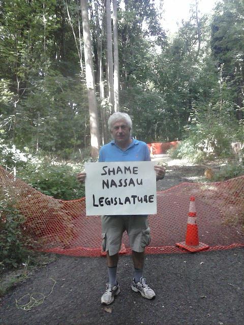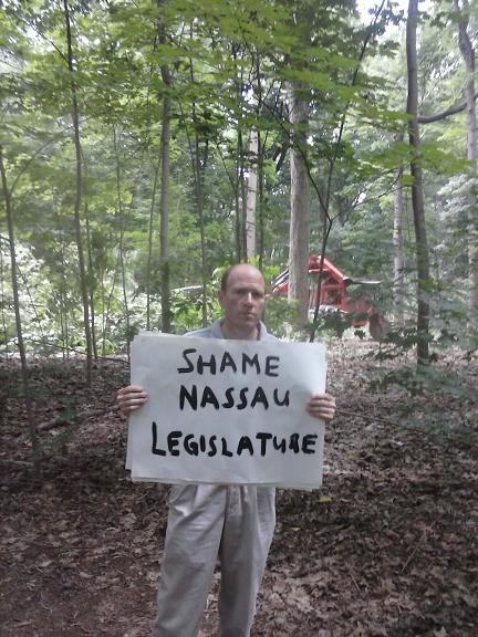 Photos of Christopher Morley Park, Manhasset-North Hills, N.Y., August 2015      Despite the pending Article 78 citizen's lawsuit to prevent it, the Roslyn Water District sent bulldozers and tree-cutters into Christopher Morley Park on August 20, 2015 and destroyed the most pristine part of the public recreational forest for a toxic-spewing "air-stripper" project.       The lawsuit is pending in State Supreme Court, Appellate Division, Second Department in Brooklyn, and will be heard in the fall or later.       Organizer Richard Brummel of East Hills took responsibility for failing to adequately mobilize or maintain public attention to force Nassau County and the Town of North Hempstead to withdraw support for the plan -- which is based on the fallacy that Roslyn desperately needs the polluted water from under the Park, and the "air-stripper" is the only way to clean it.       "We just really should have taken this home to the County Legislature and Town Board when it was clear the courts would not act in time. When you lose focus and take your eye off the ball, in this discipline you pay for it, and it is not clear until the night after the bulldozers come in. But then it becomes clear -- night after night...."       Acting Justice James P. McCormack failed to provide the semblance of justice in claiming the three citizens could not sue because they lacked adequate connection to the Park or injury from the project -- despite the sworn, unchallenged statements from all three that they frequently used and enjoyed the forest and would be harmed by the construction of a water-decontamination facility in its pristine center, clearly visible from three main trails.       Judges of the Appellate Division, notably chief judge Randall Eng and associate justice Sylvia Hinds-Radix, also participated in decisions that assured the Park would have no protection pending the appeal AND that the appeal would not be heard in time to prevent the damaging work, regardless of the decision.       These judges are all subject to election. The judge James P. "Jim" McCormack -- see his fund-raising Facebook page if it is still up -- is seeking election as a Supreme Court Justice in Nassau County this year as a Democrat, and should be roundly opposed. We will be contacting the Democratic Party and the Bar Association for this purpose and urge you to assist. We cannot afford such jurisprudence going forward. |