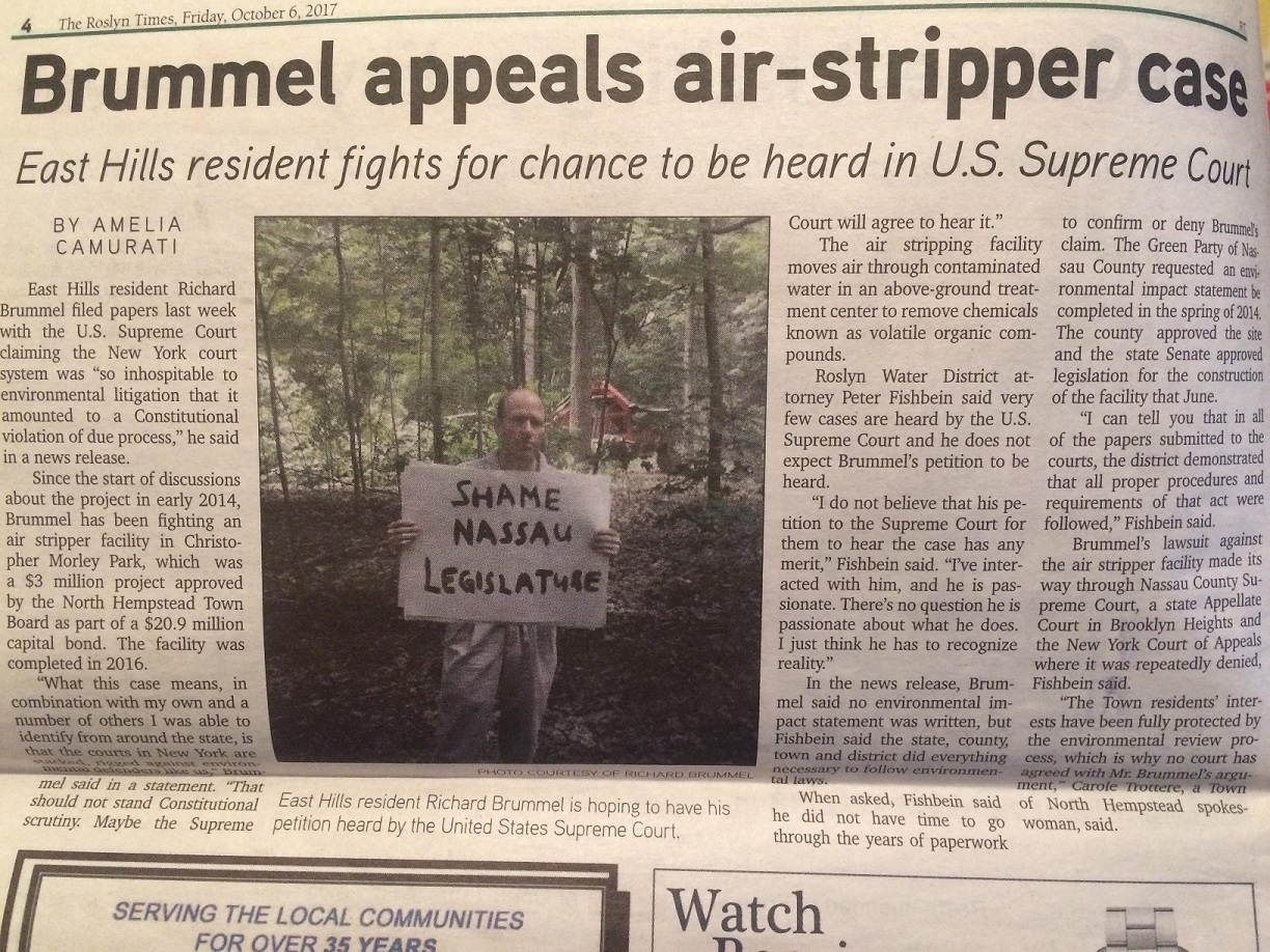 Don't Believe Ad Hominem AttacksApril 14, 2020 -- As environmental activist Richard Brummel, 59, Pompton Lakes, makes a new effort to bring reckless real-destruction in Northern NJ under some control while environmental, political and civic groups turn their backs, we anticipate attacks based on an understandable questions: 'Who is Richard Brummel?', and: 'Should we listen to him?' Part of the answer is in past news coverage -- below -- of our diligent, credible, and sometimes heroic efforts from 2011 - 2017 on Long Island, and occasionally in Upstate N.Y., trying to get local governments and then the courts to halt the rampant -- usually legally-improper -- destruction of the local environments. See also: Our Wordpress Legal-Biographical. | ||||