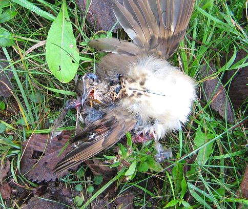 Expertly id'd as probable "Swainson's Thrush" killed on road outside Gifford Woods State Park, Vermont, 10-2011 |