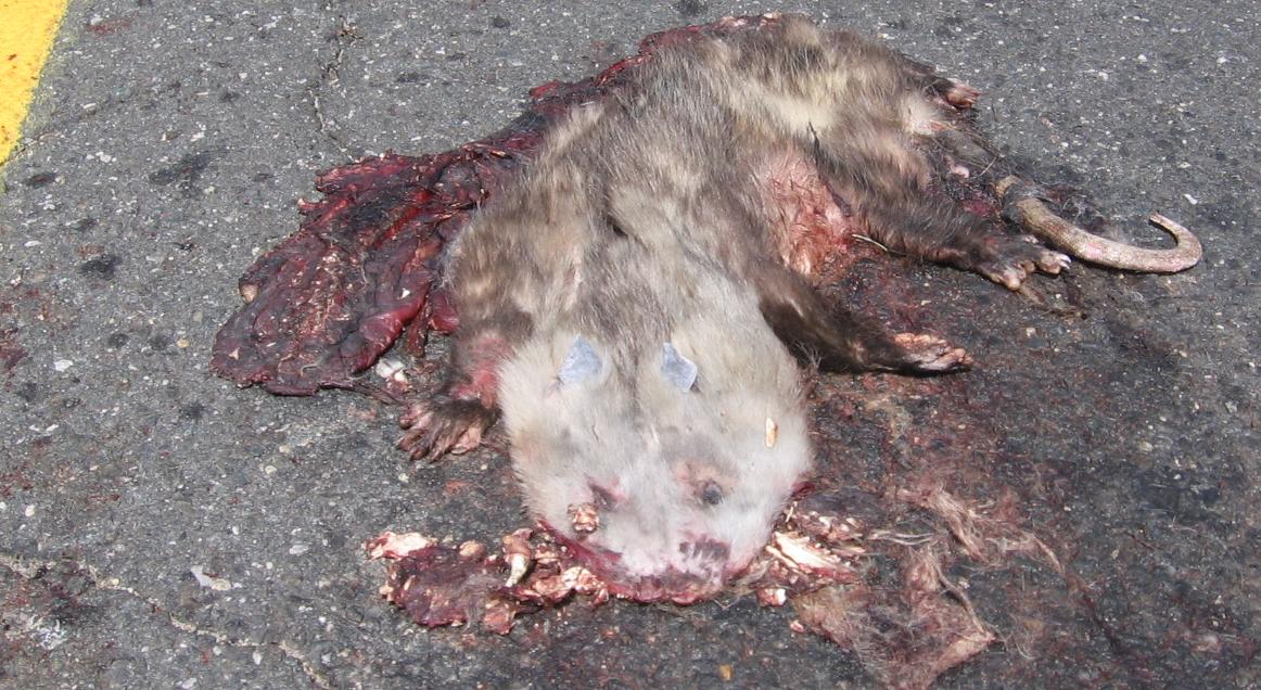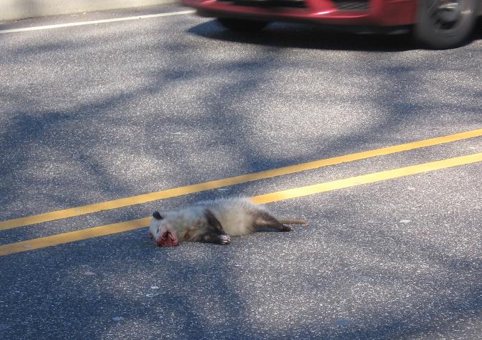 Opposum killed on Roslyn Road or Locust Lane, March 2012. |
