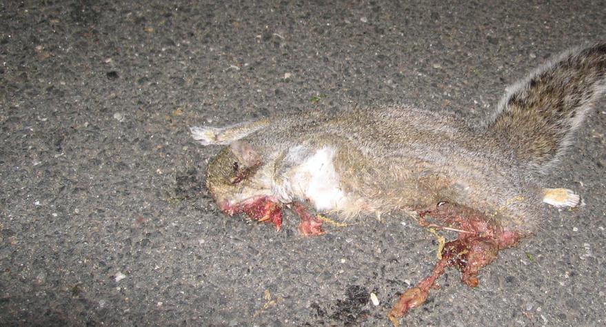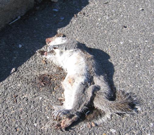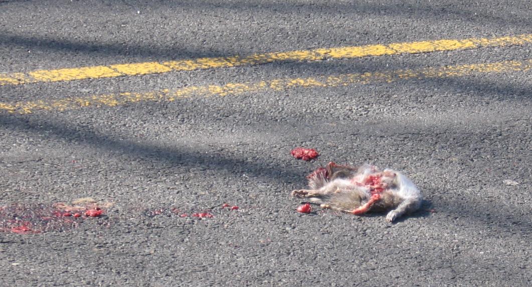 Squirrel killed on Woodbine Road, East Hills, NY, March 2012 |